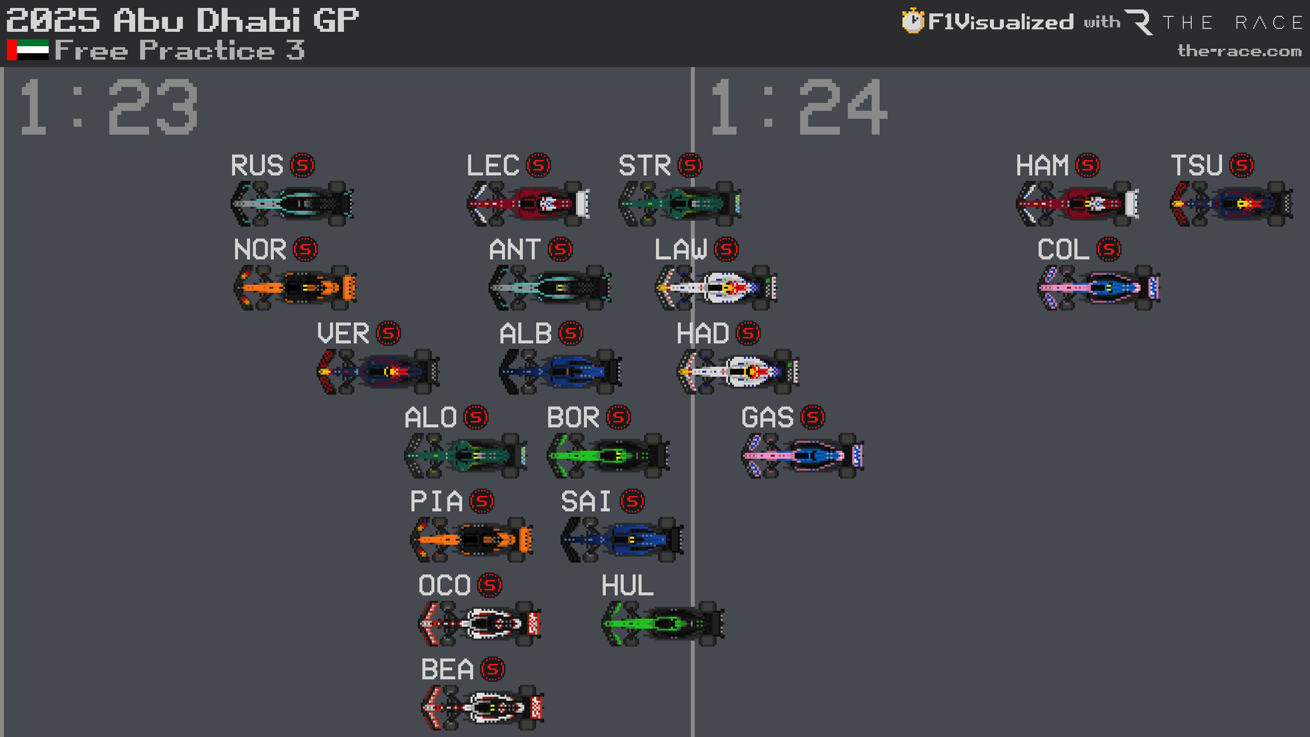 Only 0.645s covered the top 16 cars, with the Racing Bulls of Liam Lawson and Isack Hadjar bringing up the rear of that pack.
