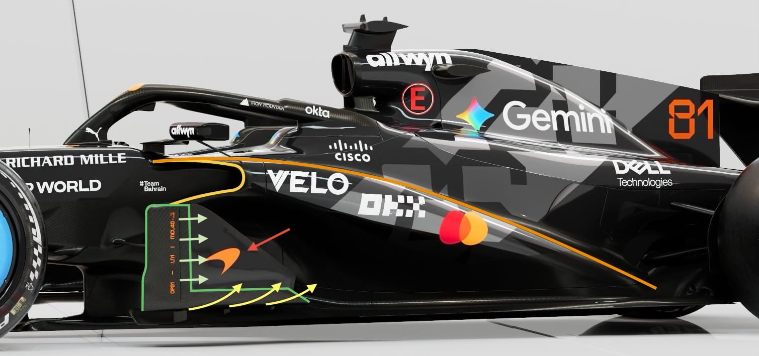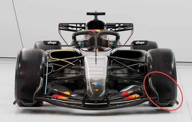 As mentioned above, McLaren has opted for the pushrod suspension system (red highlight), which, as McLaren's chief designer Rob Marshall said in an earlier interview, was for aerodynamic reasons.