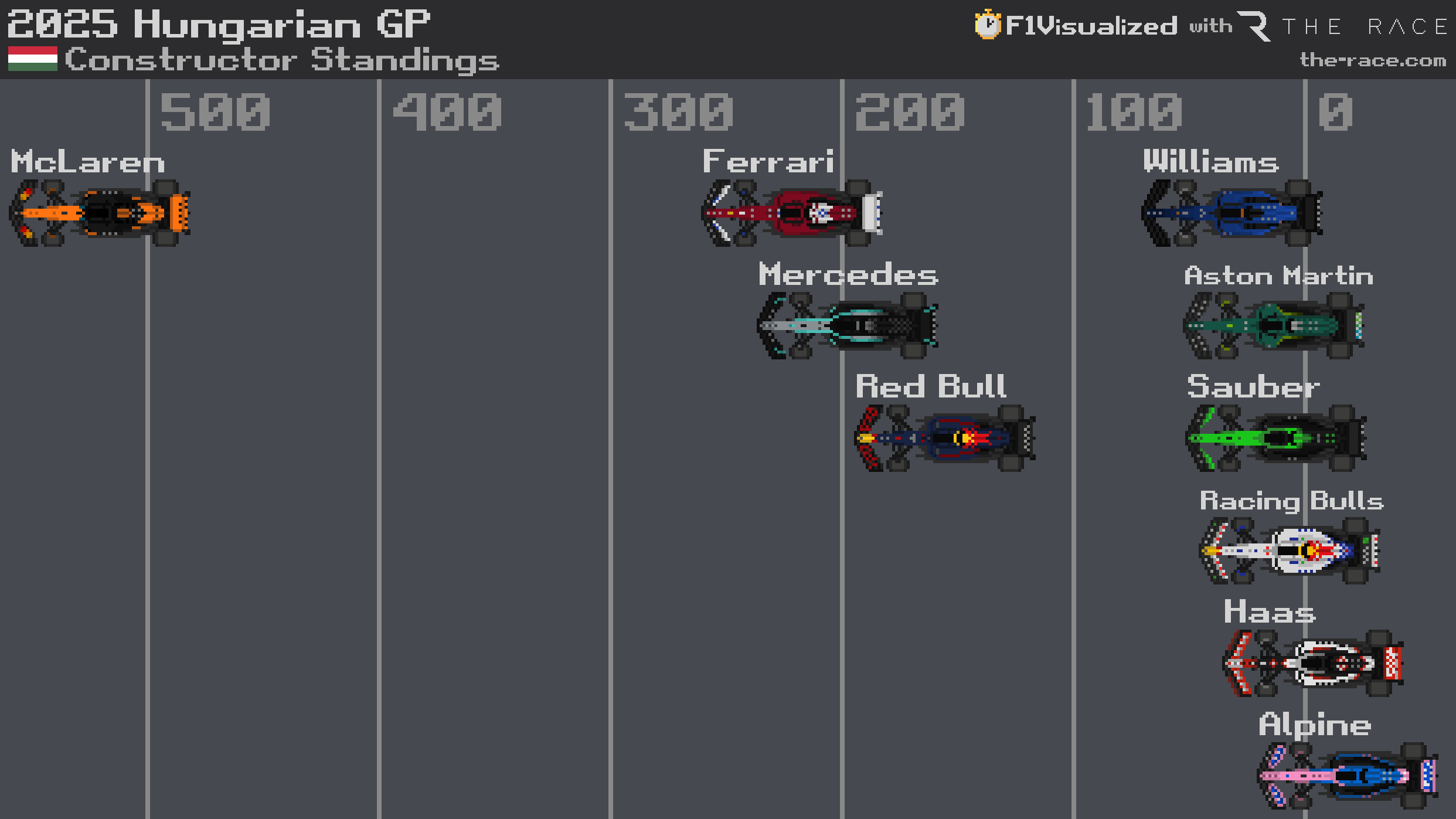 This sets up an intriguing second half of the championship with Sauber and Aston Martin on the rise and Williams and Racing Bulls potentially struggling. While Albon still has a commanding lead on 203 points, 39 clear of Hadjar, Alonso (147 points) and Hulkenberg (146 points) are closing in rapidly. Even Ocon (137 points) and Gasly (131 points) can’t be entirely ruled out, although neither Haas nor Alpine has shown the ability to deliver consistent results.