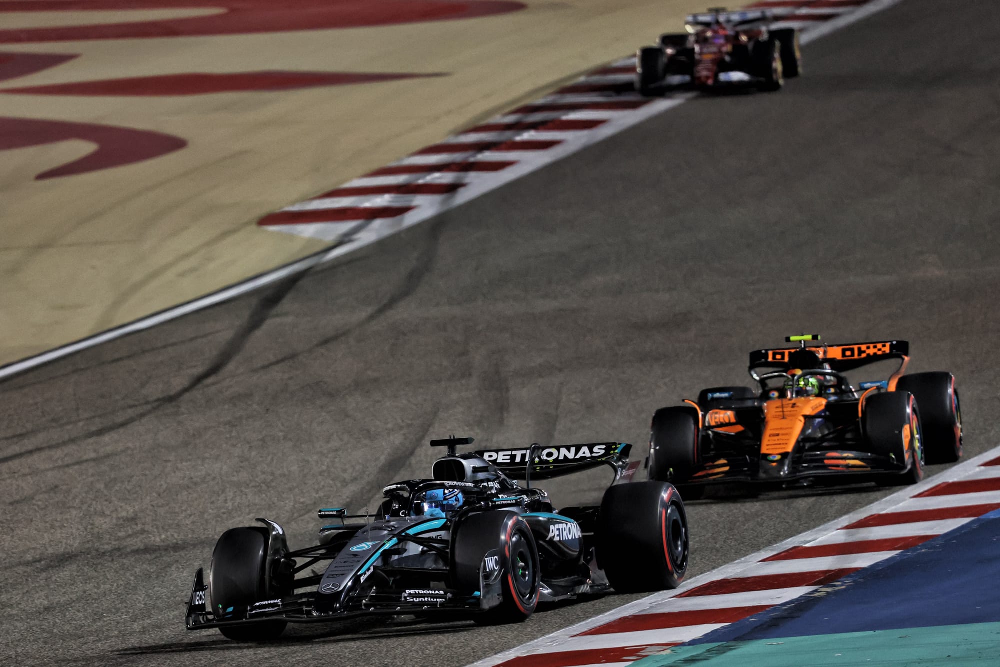 Norris quickly turned his disappointing sixth place on the grid into third place behind Piastri and George Russell's Mercedes with a great start and strong first corner, but immediately had a five-second penalty looming for having started too far forward on his grid slot.