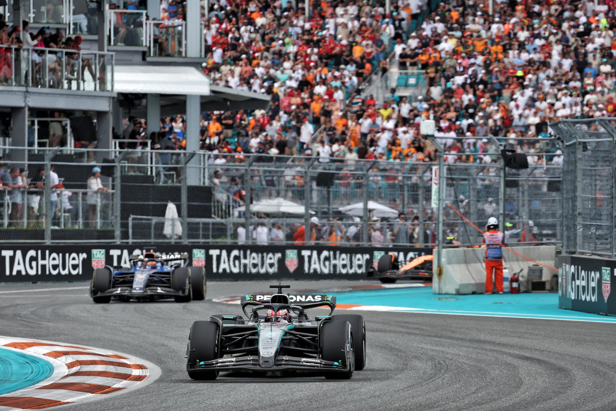 A brief virtual safety car interruption - triggered by a Turn 1 collision between Jack Doohan and Liam Lawson, Doohan getting crowded out onto the inside kerb in the melee and sustaining a race-ending puncture in the contact - was followed by the two McLarens unleashing their superb pace.